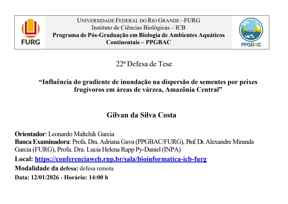 Convite 22ª defesa de Doutorado do PPGBAC - Gilvan da Silva Costa por Glauco Delevedove — Publicado: 09/01/2026 13h32 , Última modificação: 11/01/2026 22h25 Clique aqui para obter o convite no formato PDF.